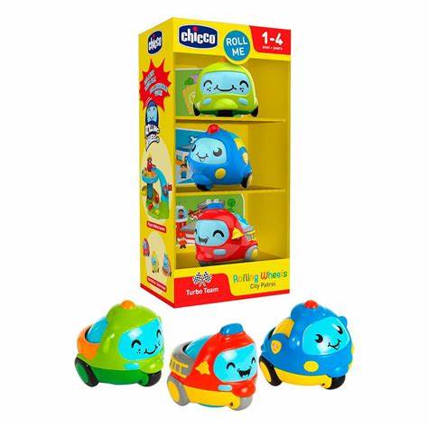 Questo 3 veicoli di pattuglia di Chicco per le prime avventure nella città e si muovono in tutte le direzioni. Hanno simpatiche espressioni in tema squadra di soccorso. Inoltre, sono facili da usare, ruotandole, tirandole e girandole.