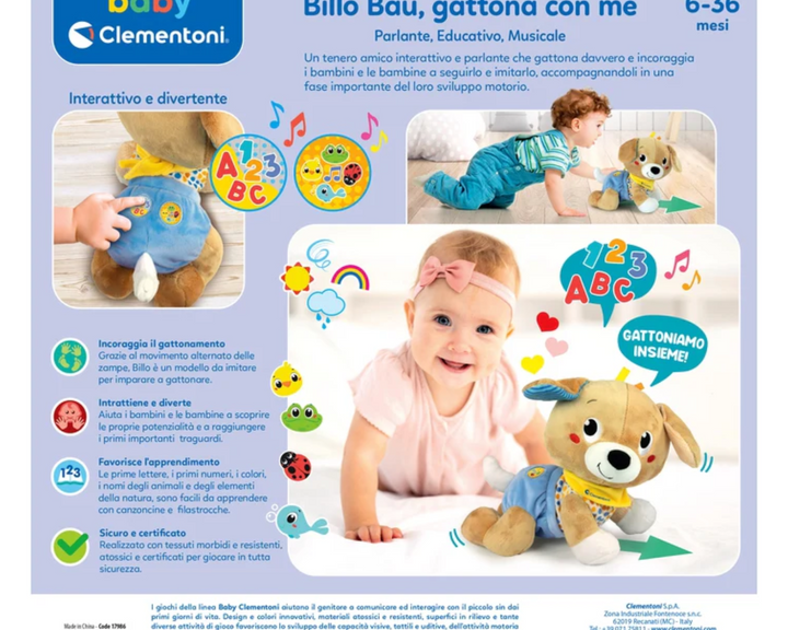 Il morbidissimo peluche muovendosi nello spazio incentiverá il bambino a seguirlo per iniziare a gattonare.