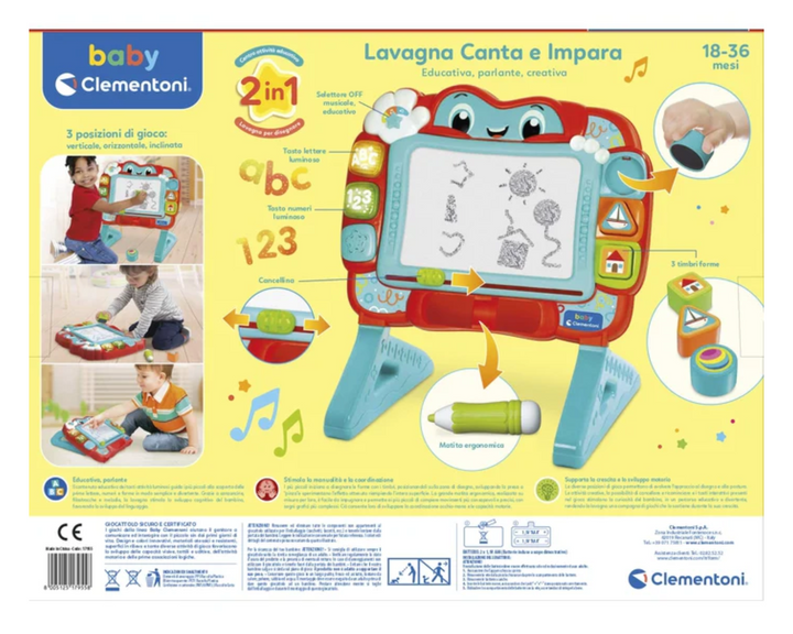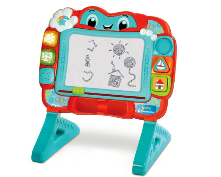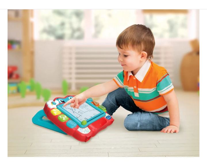 La divertente e coloratissima lavagna interattiva, lei stessa il personaggio, con cui giocare, imparare le prime lettere e i primi numeri e disegnare con gli stampini o con la matita. 2 in 1... Centro attività educativo elettronico e lavagna per disegnare, con un approccio graduale al disegno: prima con le formine e poi con la matita.